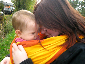 Certains qualifient d'ailleurs le porte bébé d'utérus avec vue. A juste titre puisque, porté par sa mère, le bébé retrouve une grande partie des perceptions sensorielles qu'il a connues in utero: le rythme rassurant des battements de son coeur, les gargouillis de son corp, le bercement de ses mouvements, le son de sa voix, le contact de sa peau. Signe de cette continuité: dans de nombreuses régions du monde, le porte bébé évoque l'utérus, soit par sa forme (le capuchon des femmes inuit), soit par ses ornements (chez les Ikas des Colombie, des symboles représentant le placenta sont tissés dans l'écharpe de portage), soit par sa couleur (chez les Dogons du Mali, les écharpes de portage sont teintes d'un bleu indigo qui évoque l'eau du liquide amniotique)."